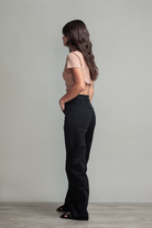 Cintura definida, pierna relajada y largo completo: una combinación atemporal que equilibra estructura y movimiento.
