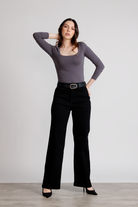 Jeans wide leg negro con cinturón incluido. Tiro alto, corte full length y diseño clásico. Diseño clásico de cinco bolsillos con cierre de botón metálico. Estilo versátil y sofisticado para cualquier ocasión.