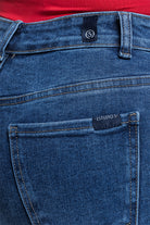 Destaca con Estudio S: Jeans corte marine straight de mezclilla azul oscuro. Diseño con desgaste, el clásico de cinco bolsillos, cintura alta con trabillas, botón y cremallera, ajuste perfecto a la silueta de la cintura hasta la mitad del muslo y se vuelve ligeramente ancha.